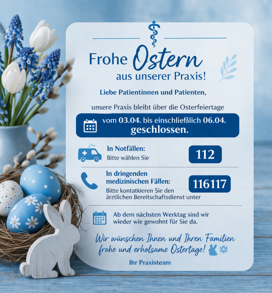 Akutsprechzeit (ohne Termin) täglich 7-10 Uhr und Montags, sowie Donnerstags 14.00 - 15.30 Uhr.